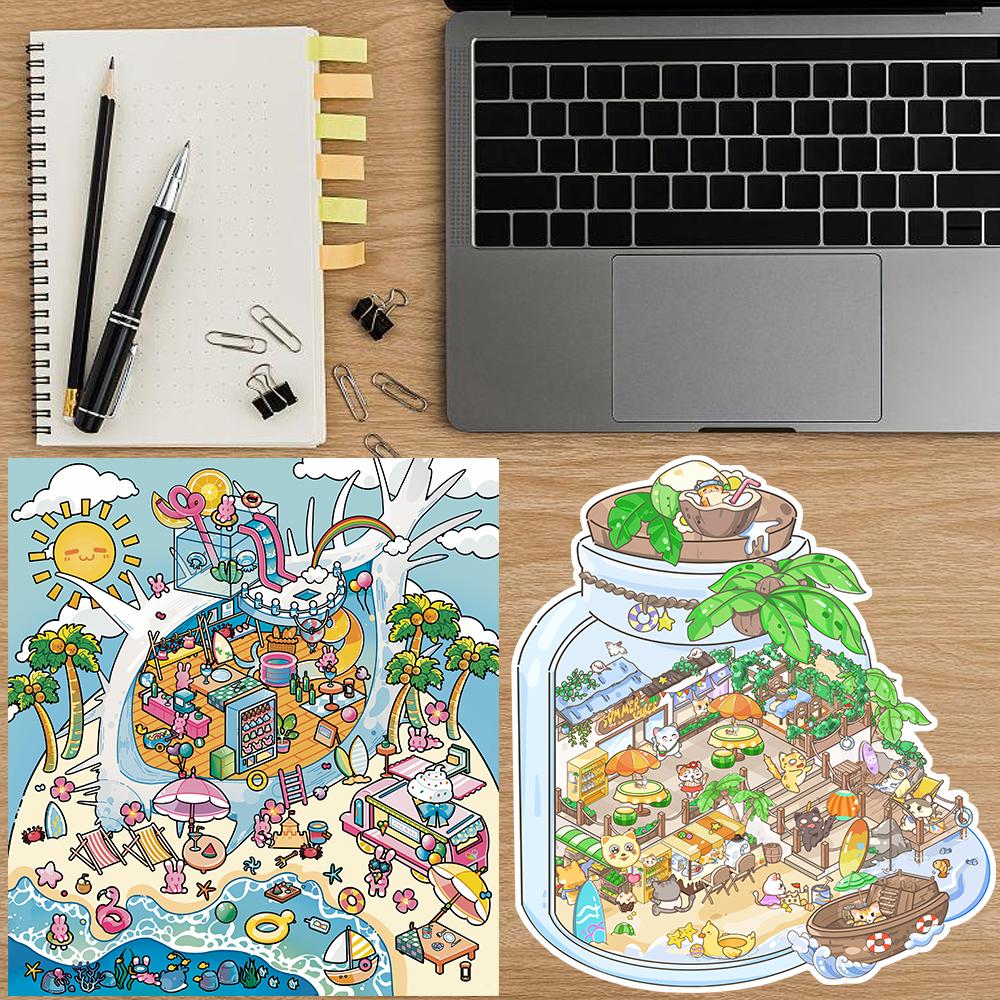 Summer Vacation Miniature Scene Sticker Landscape Home Cartoon Laptop Luggage Creative Decoration Chambre Painting Stickers