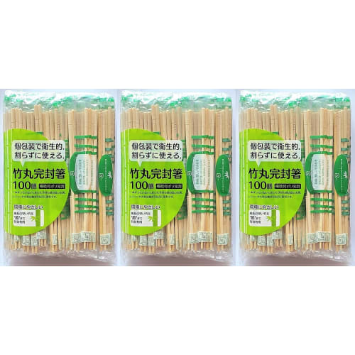 Set of 3 (Yamato Bussan Disposable Bamboo Chopsticks, Round, Fully Sealed, with Toothpicks, Approx. 20cm Long x 5mm Diameter, Individually Wrapped for