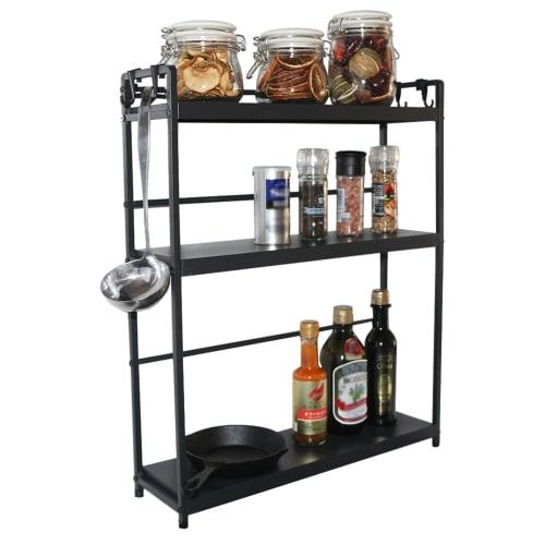 Lucky Thin Stovetop Side Rack, 3-Tier Condiment Rack, 50cm Wide, with Hooks, Kitchen Storage, Condiment Shelf, Kitchen Shelf