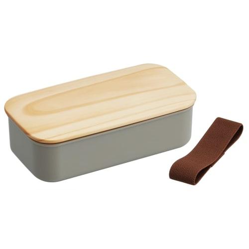 Skater Bento Box, 400ml, Single Tier, Wooden Lid, Lunch Belt Included, Small Capacity, Dishwasher and Microwave Safe, Mauve Gray, PAL5FK-A