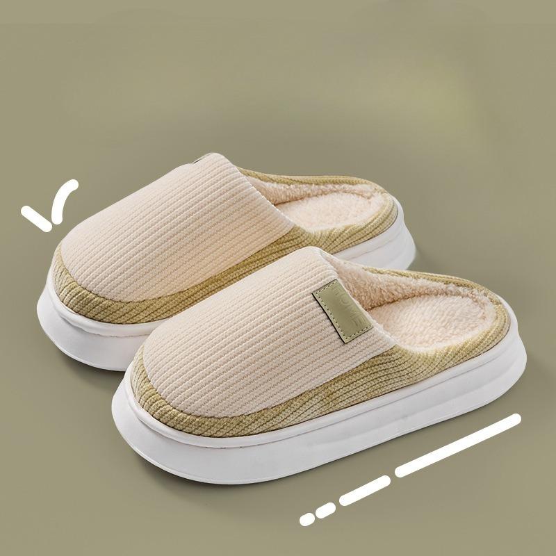 Lightweight Cotton Slippers for Indoor Use, Thick-soled for Warmth, and Fleece Shoes for Women
