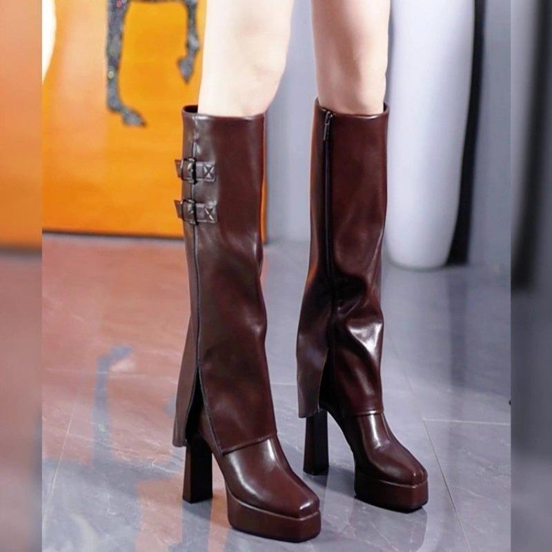 Retro rivet belt buckle thigh-high boots for women 2025 autumn and winter new motorcycle punk style high-top riding boots