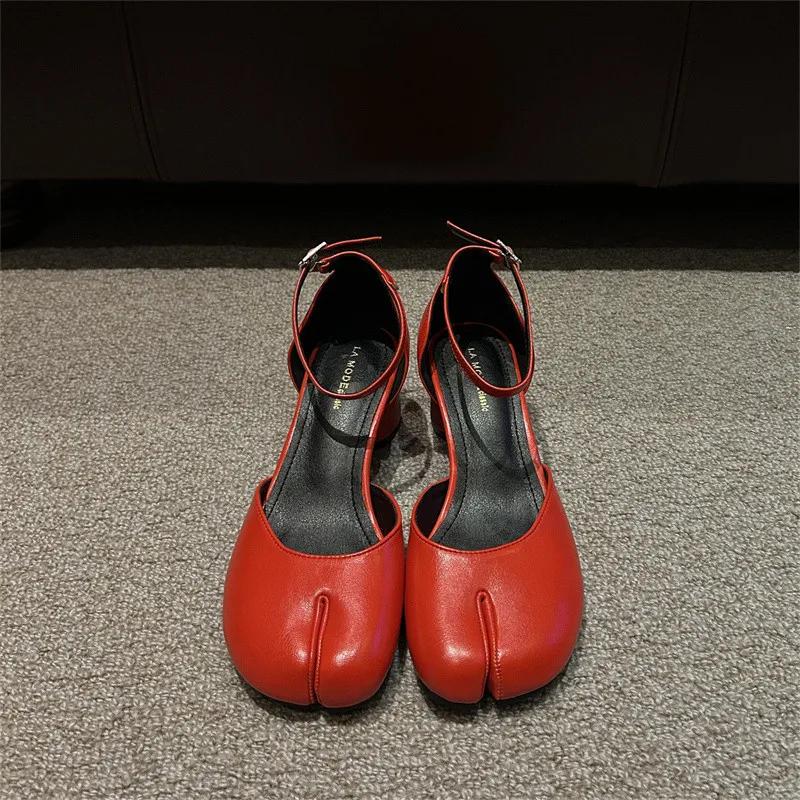 Módní Tabi Ninja Dámské Boty Kulatá Rozdělená Špička Mělké Sandály na Silném Podpatku Střední Podpatek Mary Janes Boty Dámské Lodičky Mujer