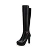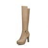 Nude hnědá barva Zralé elegantní dámské boty Zimní vysoké podpatky Kulatá špička Platforma Ke kolenům Štíhlé kozačky Přezka Pásek Designérské boty