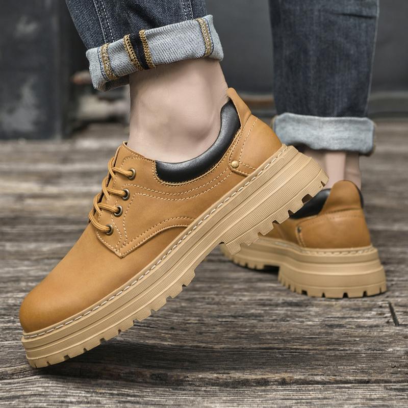2024 men's British fashion versatile platform comfortable flat shoes for retro workwear and trendy leather shoes