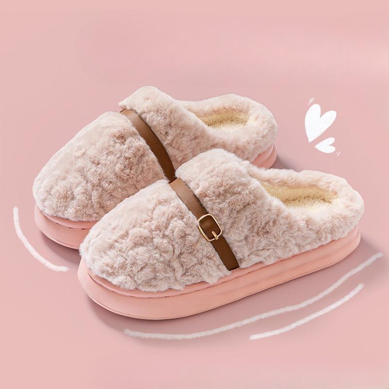 Cotton Slippers with Toe Caps for Warmth, Thickened Plush and Soft-soled Home Shoes for Women