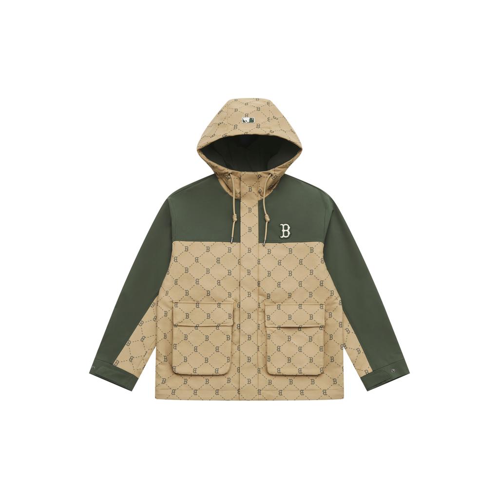 New MLB MONOGRAM Collection Boston Red Sox SS25 Windproof Jacket Unisex Dark Khaki 3AWJM0151-43KAD