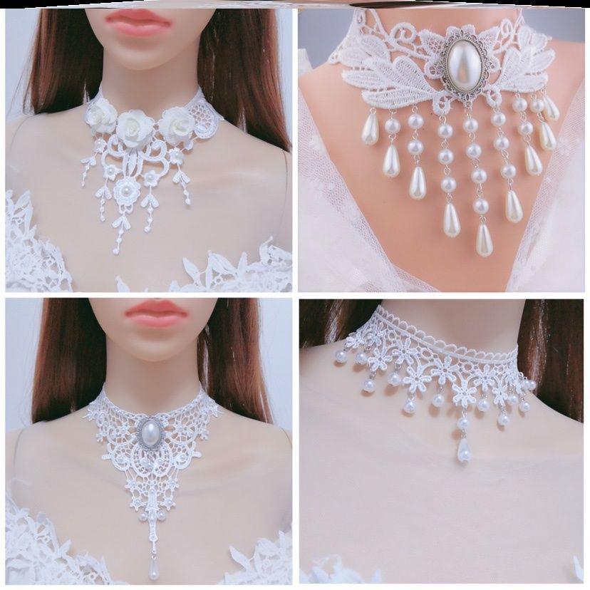 Elegantní Vintage Perlový Krajkový Choker Náhrdelník pro Ženy – Doplněk ke Svatbám a Večerním Šatům