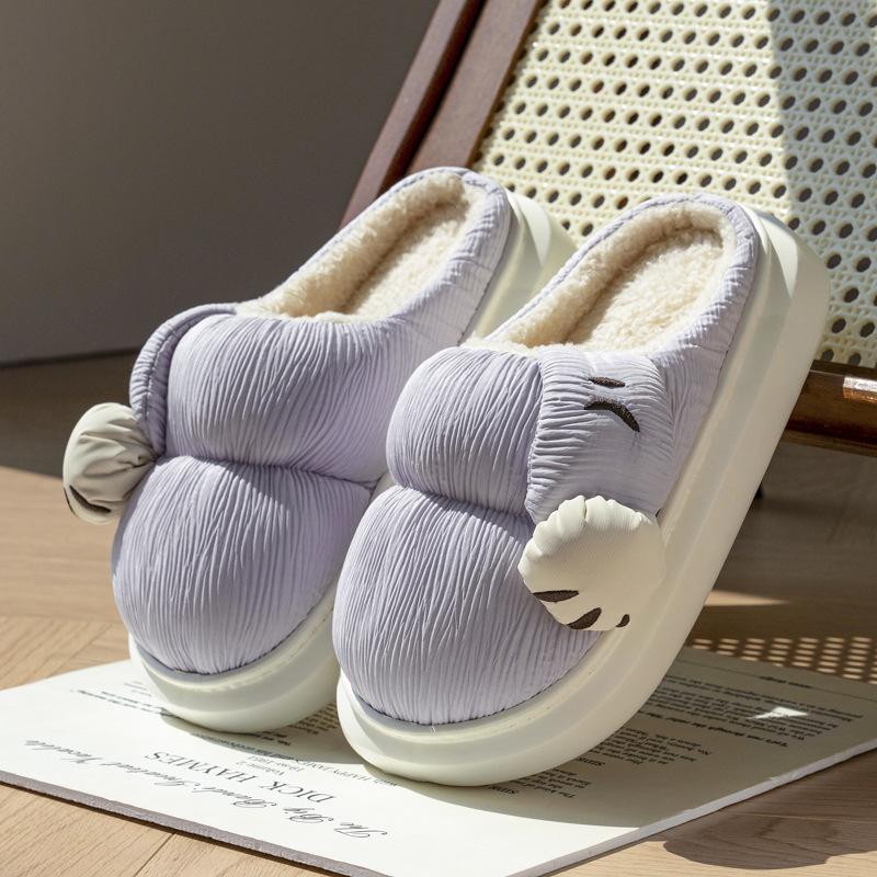 Cute cartoon cat claw cotton slippers winter new candy color velvet warm soft thick bottom heightening cotton slippers