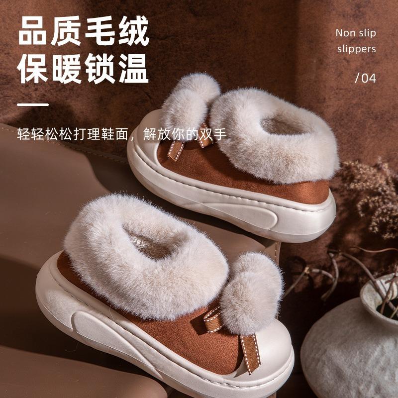 Cute cotton ball cotton slippers women's winter bag heel new thick-soled non-slip velvet warm outer wear cotton shoes women