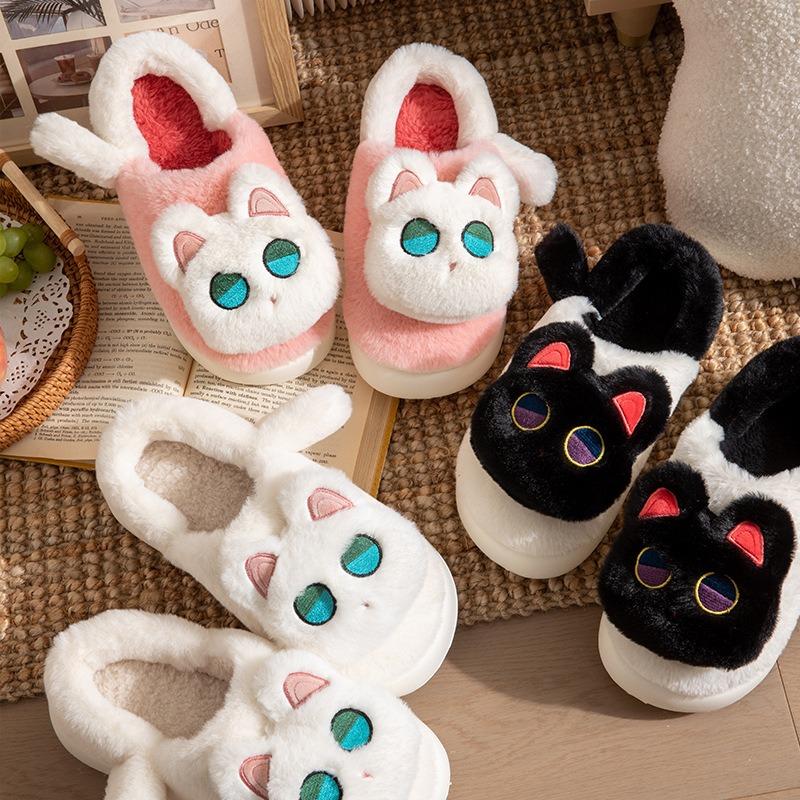 Cute cat cotton slippers female autumn and winter girl heart indoor home plush warm cartoon non-slip plush slippers
