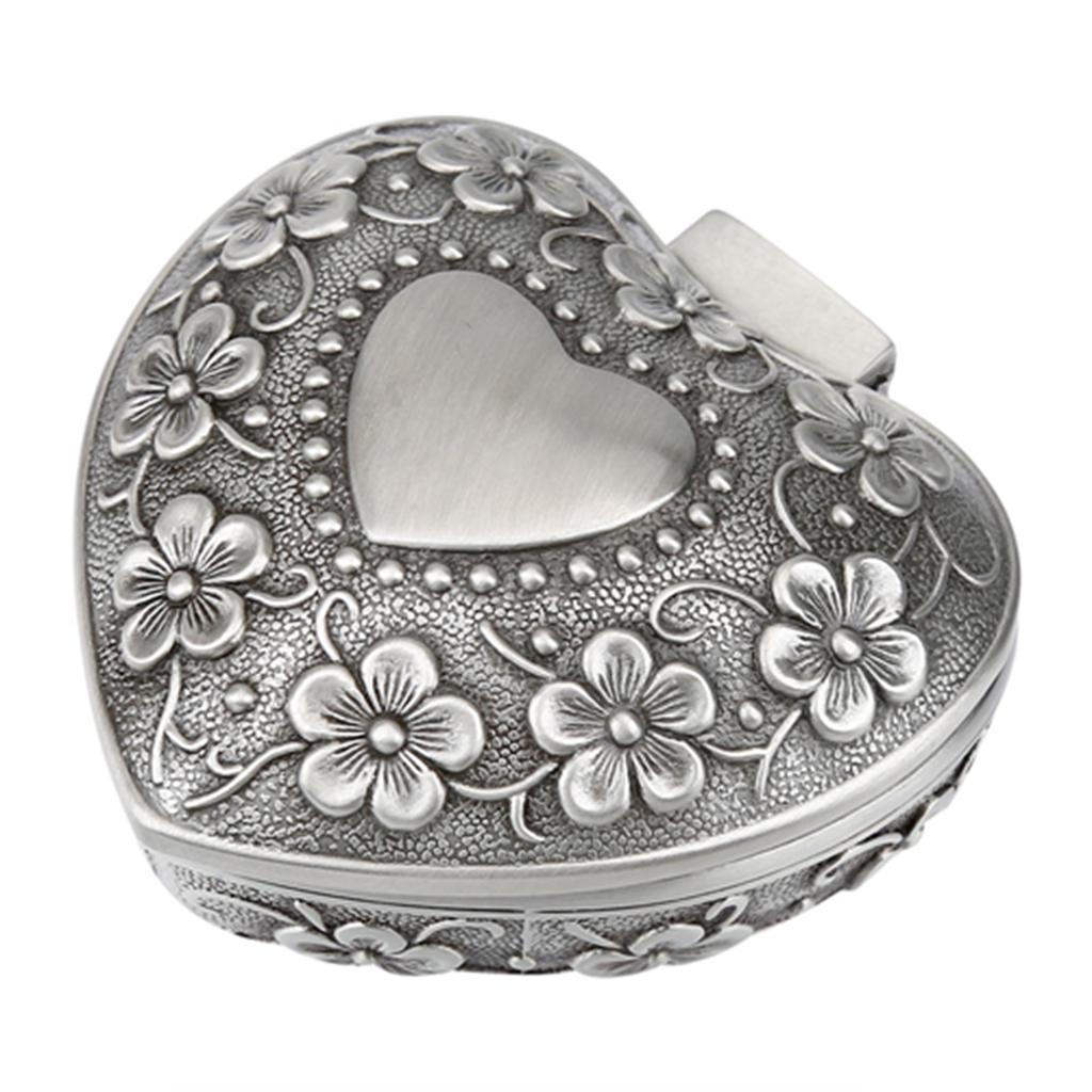 Vintage Jewelry Box Metal Heart Shape Carved Flower Antique Necklace Earring Storage Organizer