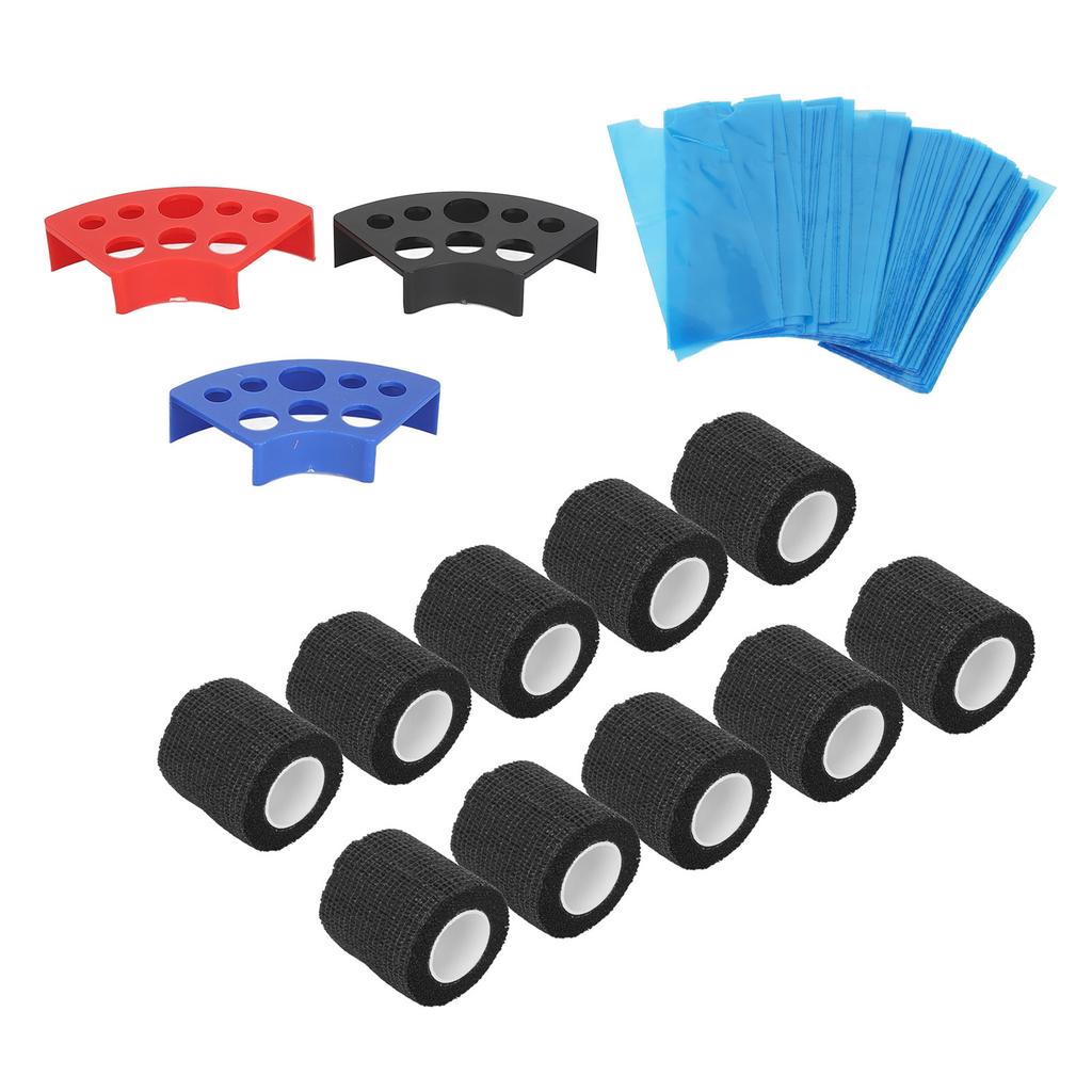 200pcs Blue Tattoo Pen Machine Covers with 10pcs Grip Tapes 3pcs Ink Cup Holder Stand Elastic Bandages Tattoo Supplies