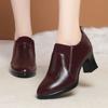 Boty na vysokém podpatku s hlubokým výkrojem z měkké kůže s měkkou podrážkou, podzimní novinka pro ženy, protiskluzové boty na středním podpatku z kůže, střední a starší jednoduché boty