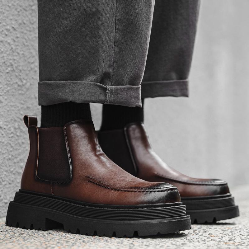 England style men casual chelsea boots black brown genuine leather shoes cwoboy platform boot spring autumn handsome ankle botas
