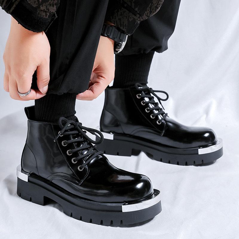 mens fashion punk hip hop platform boots black stylish genuine leather shoes cowboy ankle boot handsome motorcycle botas hombre