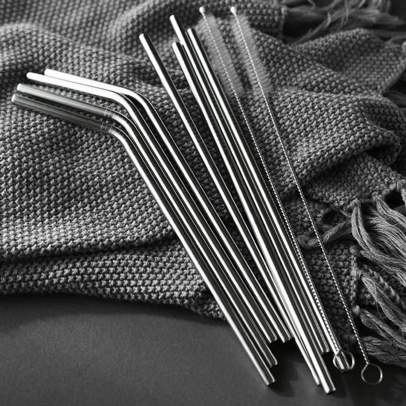 8Pcs Stainless Steel Straws Reusable Drinking Straw Set Ice Coffee Smoothie Milk Tea Straws Metal 8 Inch Straws for 20oz Tumbler