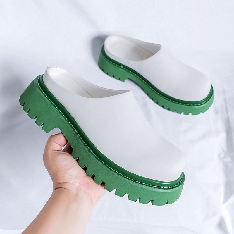 mens casual half shoes slip-on original leather platform shoe black white summer loafers outdoors stylish designer footwear mans