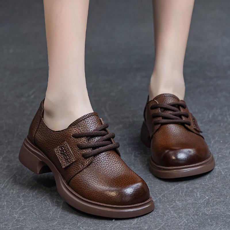 2023 Podzimní dámské šněrovací boty z měkké hovězí kůže - Silný střední podpatek, Měkká podrážka, Hluboký výkroj - Celoroční nošení.