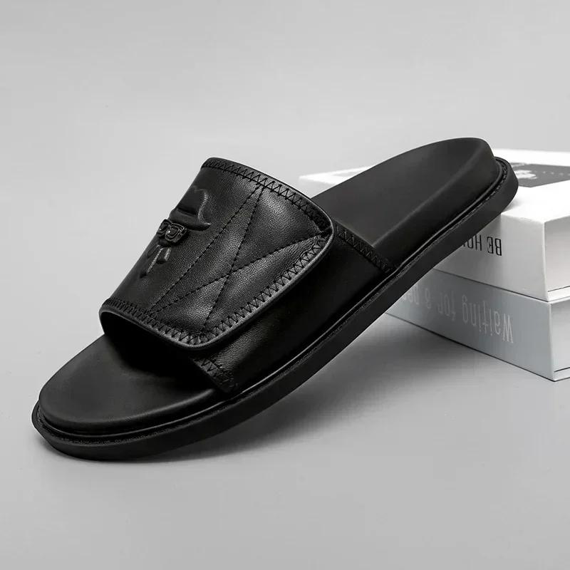 First-layer Cowhide Men's Slippers Light Luxury High-quality Slipper Handmade Genuine Leather Mens Sandals Non-slip Slippers Men