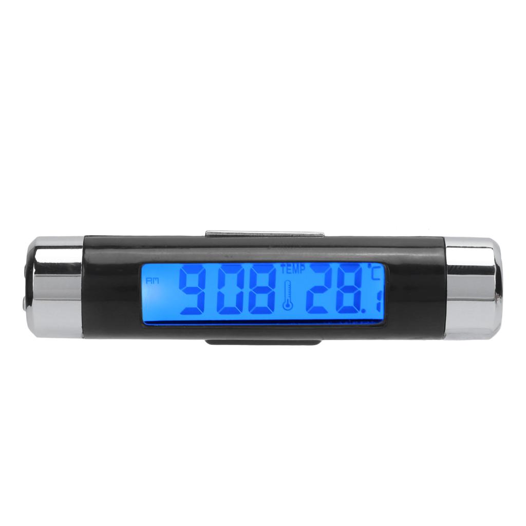2‑in‑1 Car Digital Thermometer Black Dashboard Blue Backlight Calendar Clock Temperature Gauge
