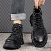 Winter Men's High Top Boots British Style Chunky Sole Round Toe Plush Lined Leather Boots Non-Slip Warm Comfortable Snow Shoes