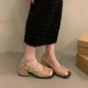 Coarse heeled mid length follow-up shoes for women 2025 new spring fairy style French evening shoes