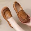 Dámské retro mokasíny z pravé kůže s kulatou špičkou, protiskluzové baleríny, měkké každodenní pracovní a volnočasové vycházkové boty, boty pro matku
