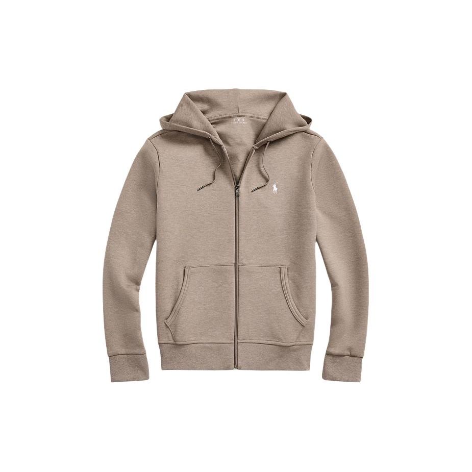 Polo Ralph Lauren Ss24 Jednobarevná mikina s kapucí na zip s výšivkou loga Dlouhý rukáv Pánské mikiny Tmavě šedohnědá MNPOKNI16823458-200