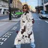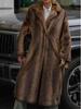 Fashion Mixed Color Lapel Collar Woman Long Coat Elegant Full Sleeve Loose Overcoat New Winter Lady High Street Faux Fur Jacket
