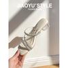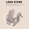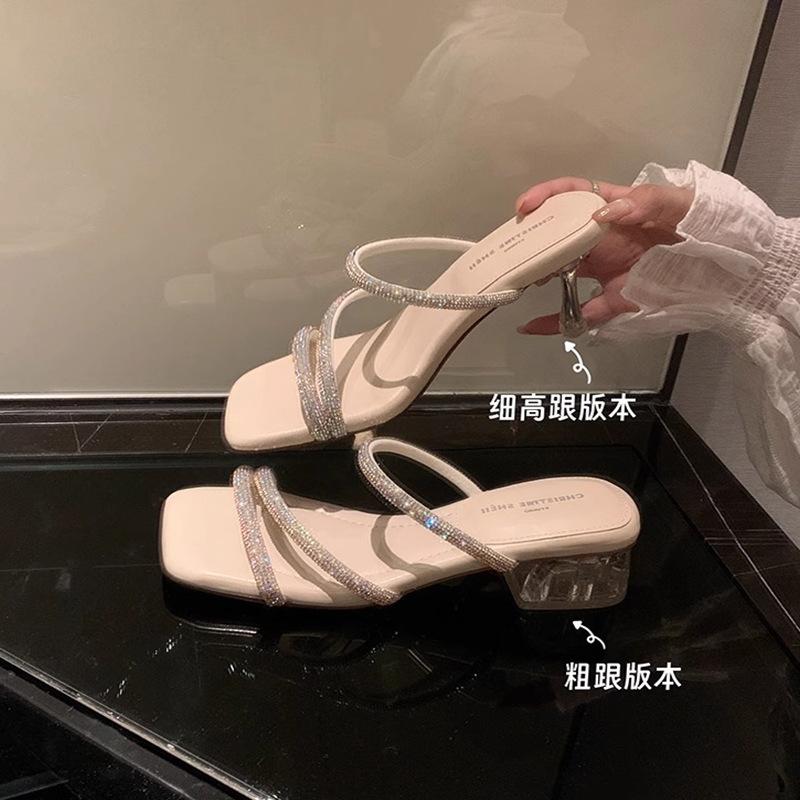 Spot~ Transparent crystal thick-heeled slippers for women's 2025 new summer square-toed rhinestone sandals