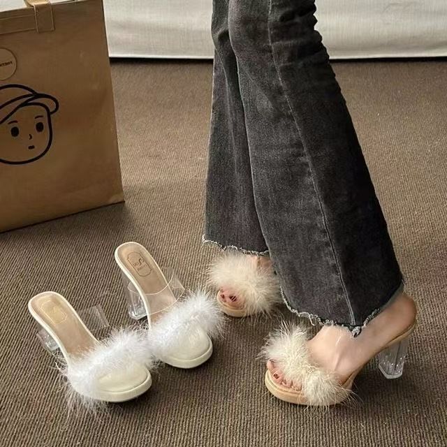 Crystal thick heel temperament waterproof table super high heels 11CM large size with transparent sandals women's summer 2025 explosion