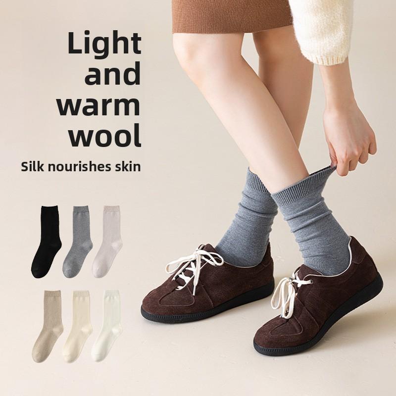 Wool and Silk Socks for Women in Autumn, Light and Warm Mid-calf Socks, Antibacterial and Deodorizing Long Calf Pile Socks