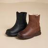 Soft-soled short soft leather Martin boots women's autumn and winter new velvet comfortable round head mid-heel Chelsea short boots