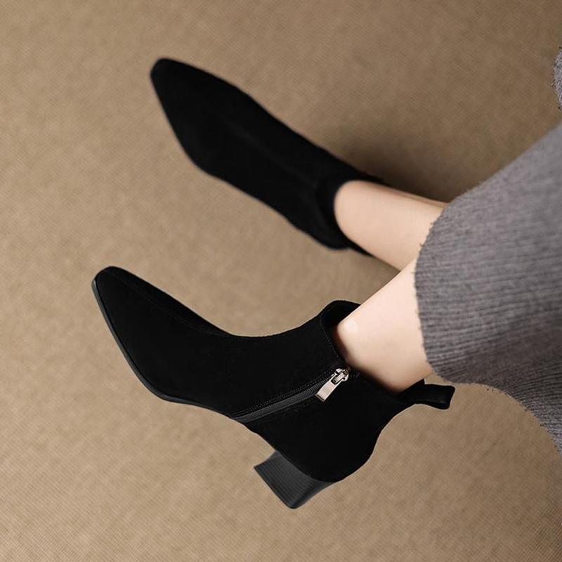 Krazing Pot Cow Suede Nubuck Winter Round Toe Chunky Heels Fashion Boots Women Zipper Retro Elegant Women Ankle Boots