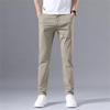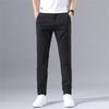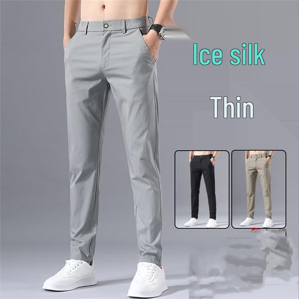 2025 Summer Men's Slim Straight Ice Silk Pants: Trendy, Elastic, Solid Color, Casual All-Match