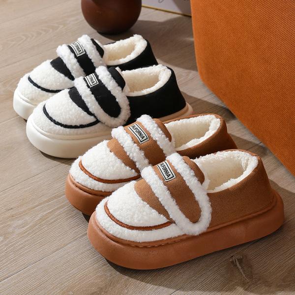 Autumn and winter bags and cotton shoes, thick-soled non-slip and velvet warm, simple and versatile plush cotton slippers