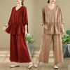 Women's Summer Fashion 2023: Solid Color Loose Two-Piece Set with Short-Sleeve Top and Printed Trousers (Plus Size Available)
