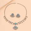 Retro Gemstone Bead Jewelry Set: Indian Ethnic Style Earrings & Necklace