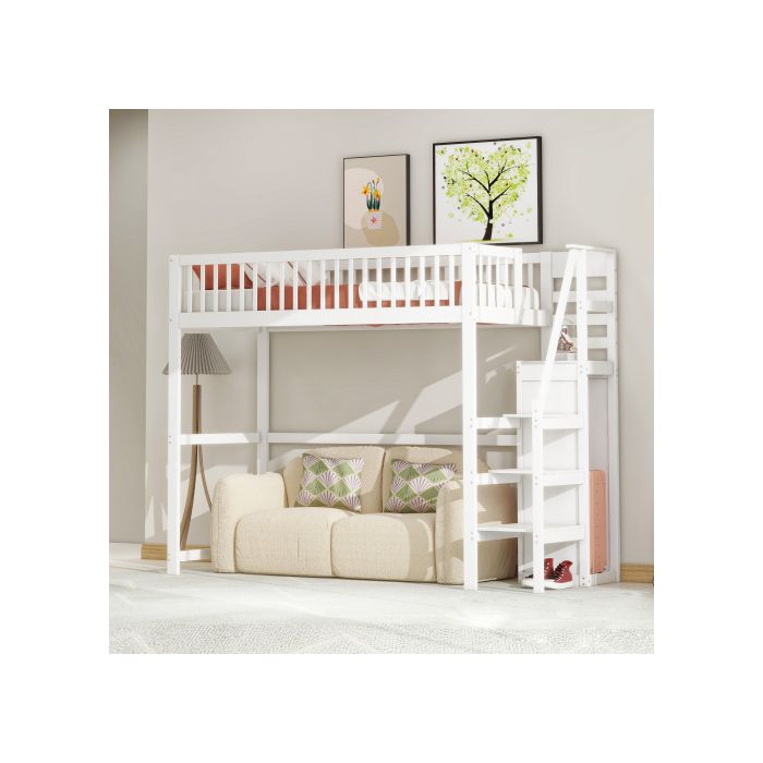 Lit mezzanine - MUVOE - 90x200 - Bois massif - Échelle de sécurité - Rangement intégré