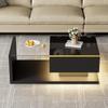 Table basse moderne noire avec éclairage LED, plateau de table brillant, 120 x 50 x 38,5 cm