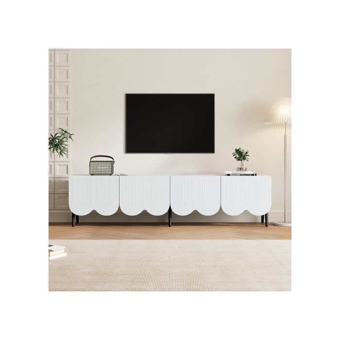 Meuble TV - MUVOE - Moderne - Blanc - 180 x 40 x 45 cm - Pour téléviseurs jusqu'à 80 pouces