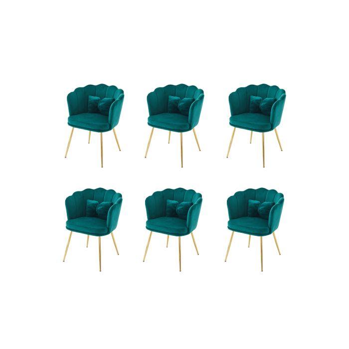Lot de 6 chaises de salon modernes en velours, chaises de salle de bain, chaises rembourrées avec dossier en forme de pétale