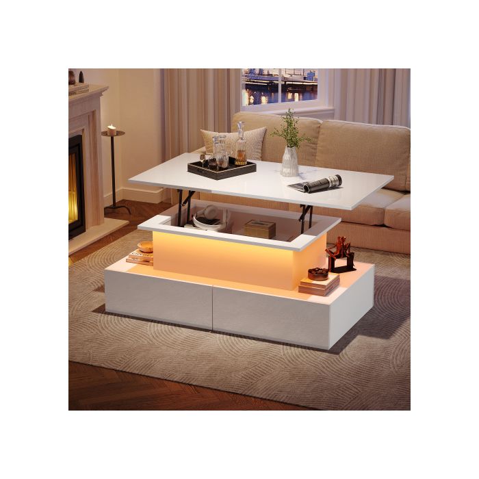 Table basse - MUVOE - Moderne - Blanc brillant - Éclairage LED - 4 tiroirs
