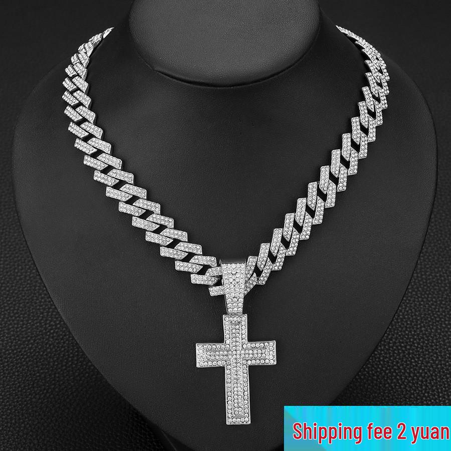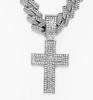 Pánský náhrdelník s křížkem ve tvaru kosočtverce s kubánským řetízkem: Hip Hopová móda se slitinou a designem s plnými diamanty