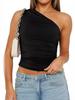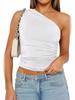 Dopřejte si ležérní styl s tímto crop topem na jedno rameno, který je ideální pro dodání jedinečného šmrncu vašemu letnímu šatníku.. Jednolitý vzor nabízí klasický a všestranný vzhled, zatímco luxusní tkanina z mléčného hedvábí zajišťuje měkké a pohodlné nošení.. Tento top na ramínka, vyrobený z vysoce kvalitního materiálu z umělého hedvábí, poskytuje elegantní a hladkou texturu.. Ideální pro teplé dny, krásně se hodí k šortkám nebo sukním s vysokým pasem pro šik a současný outfit.