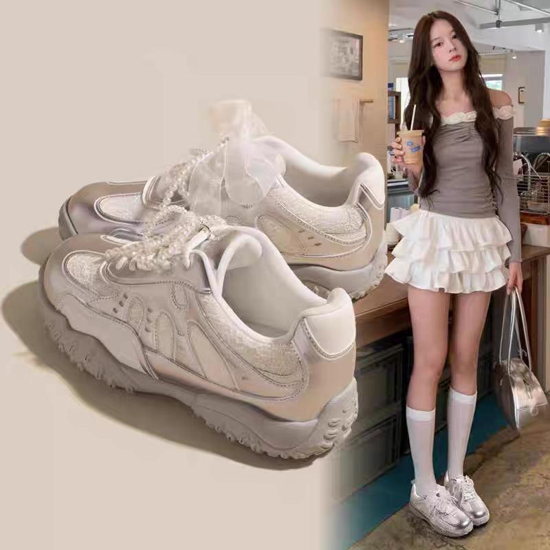 Thick-soled inner height increase ballet style mesh breathable moral training shoes women's shoes 2025 new spring and autumn Forrest Gump shoes little