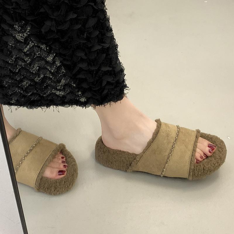 Maillard shoes drag thick soles with fluffy slippers women's shoes wear 2025 autumn new one-pedal lazy shoes