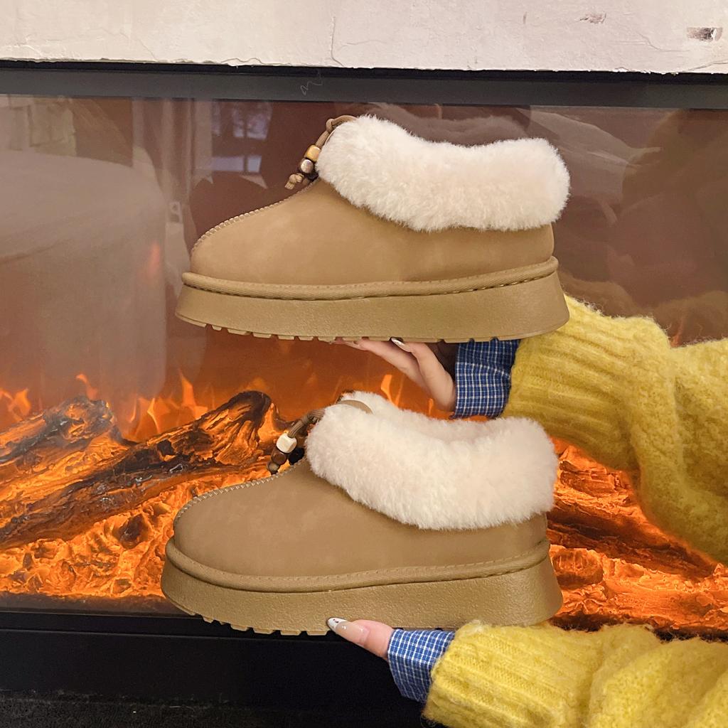 2025 autumn and winter new thickness one-pedal piled thickened thermal short snow boots casual versatile women's shoes