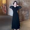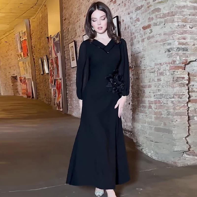 2024 Podzimní Lehké Zralé Jednobarevné Dlouhé Šaty s 3D Aplikací